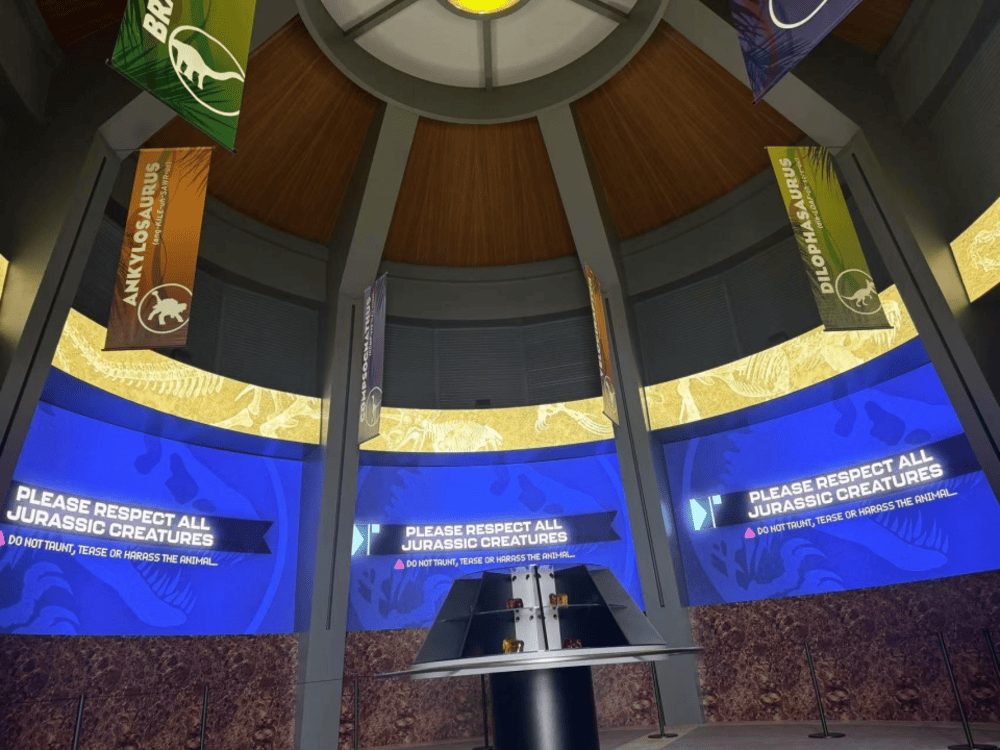 自2025年8月开始营业,侏罗纪世界:沉浸式体验已成为曼谷最受欢迎的沉浸式展览之一,以逼真还原的史前世界吸引了大量观众。为了展现恐龙栩栩如生的动态与震撼效果,显示系统不仅需要提供影院级沉浸视觉体验,还必须具备高度的设计灵活性,并能够与整体主题场景实现无缝融合。